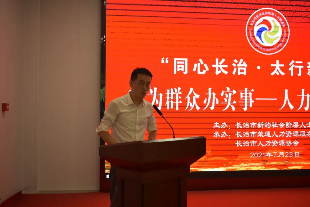 7月23日,由长治市新的社会阶层人士联谊会主办,长治市荣通人力资源服务产业园、长治市人力资源协会共同承办的“同心长治 太行新力量” “我为群众办实事——人力资源进企业”活动在长治荣通人力资源服务产业园举行。 参加本次活动的有长治市新的社会阶层联谊会五十多家会员单位代表和长治市人力资源协会的十余家会员单位代表们。