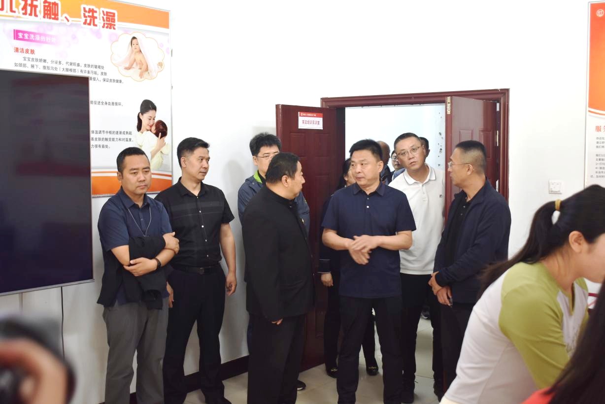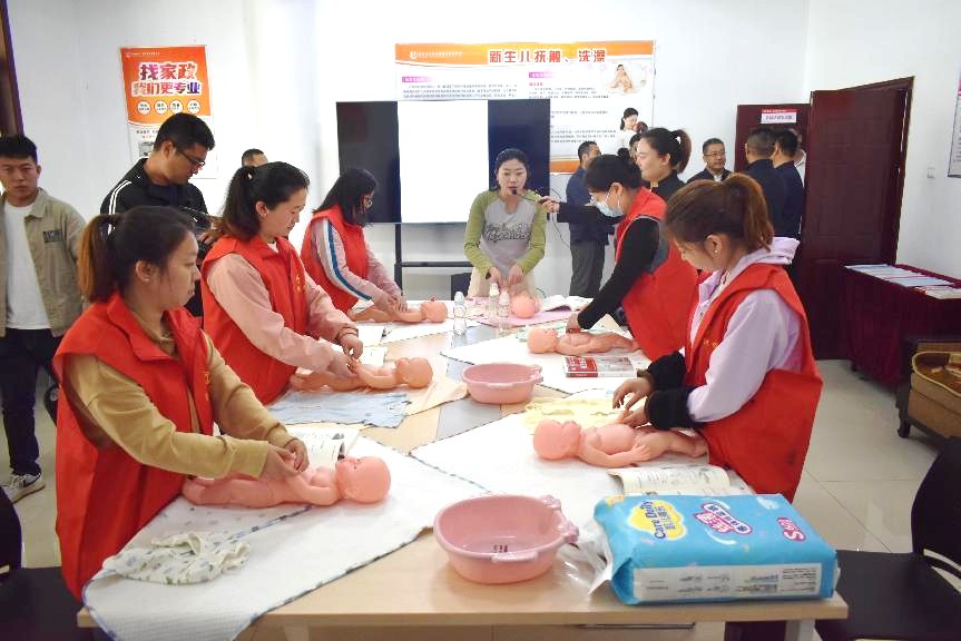 考察组领导参观了保健护理和母婴实训室,亲身体验了“太行家政”在家政培训领域的先进设施和严谨教学。领导们详细了解家政培训的设施配备、课程设置以及教学情况,对培训教师的授课流程和学员的学习状态给予了高度评价。